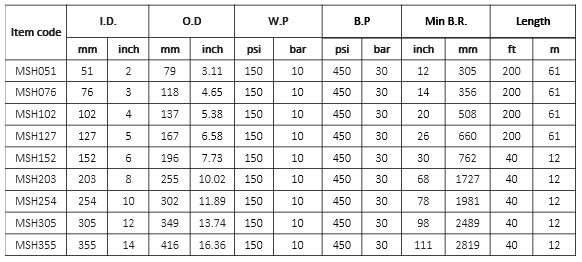 Reinforcement: Multi ply synthetic fabric with wire helix.