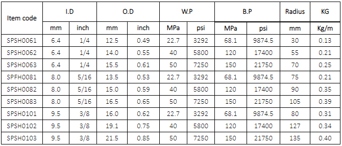 Paint Spray Hose Temperature range: -40℃ (-40 °F) - 100℃ (+212 °F)max temperature recommended for water base hydraulic fluids and air : +70℃ (+ 158°F)